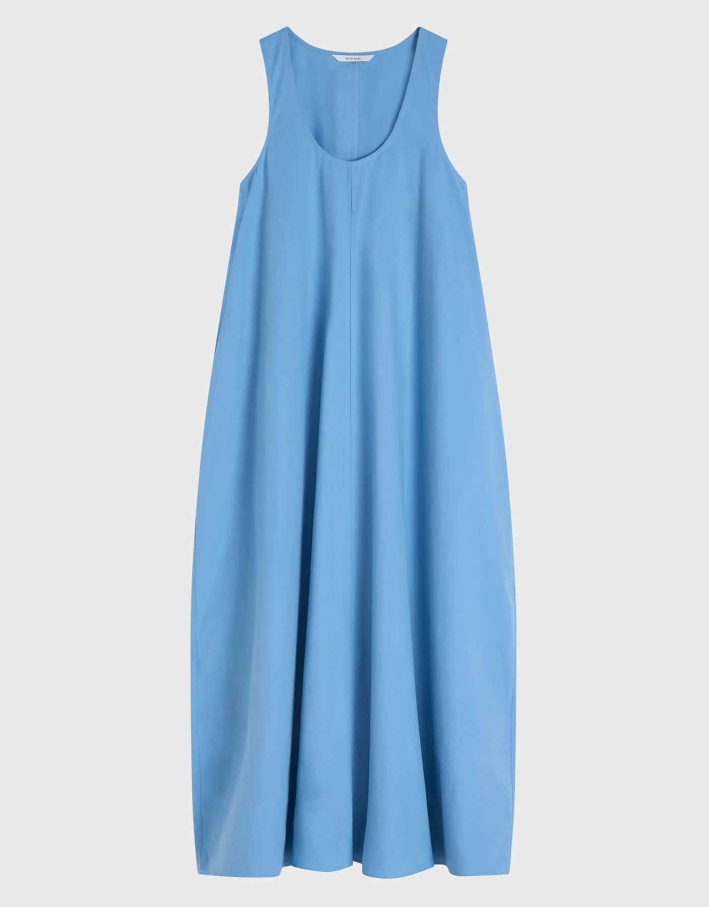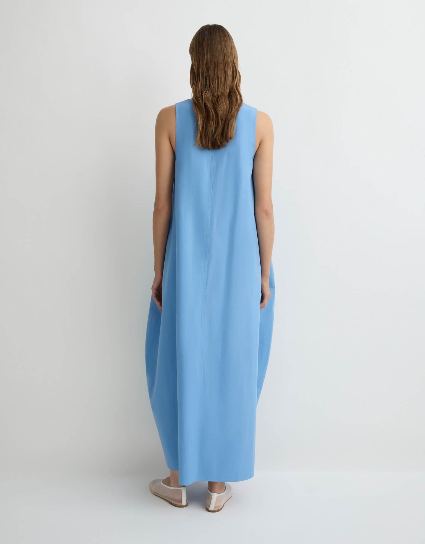 Bondi Born's Avila Cocoon Dress in Dusk is a relaxed yet refined warm-weather staple, defined by its sculptural cocoon silhouette and statement scooped neckline. Cut in a flowing maxi length with discreet side pockets, its oversized fit brings ease and understated elegance to relaxed summer days.
