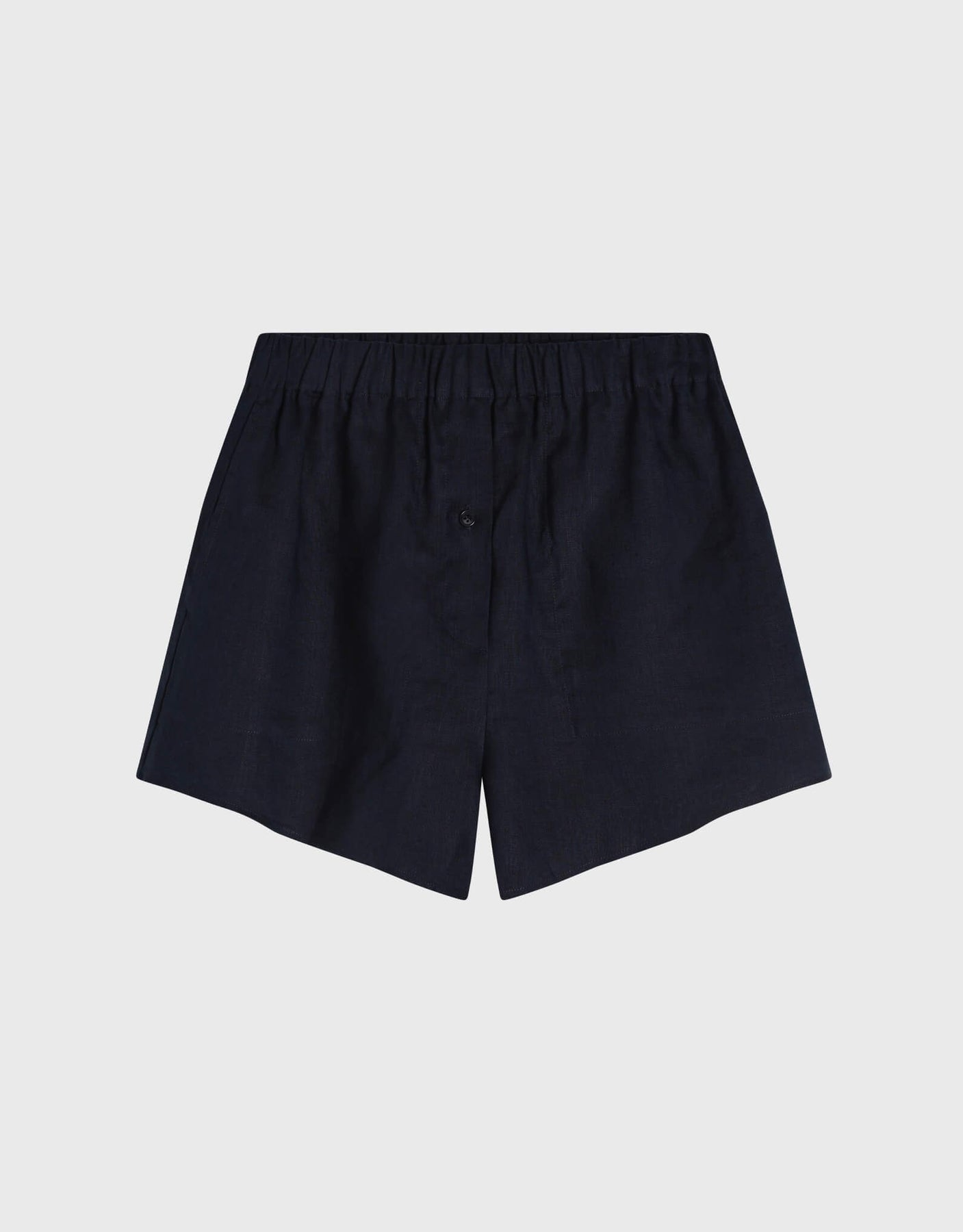 The Leiden Short in solid Navy is a refined summer staple, cut from lightweight linen repurposed from dead stock fabrics. Designed with an elasticated waistband and discreet side pockets, this relaxed silhouette offers ease and comfort through the leg. Perfect for warm-weather dressing, styled with the Tie-Front Top in Navy for a polished set.