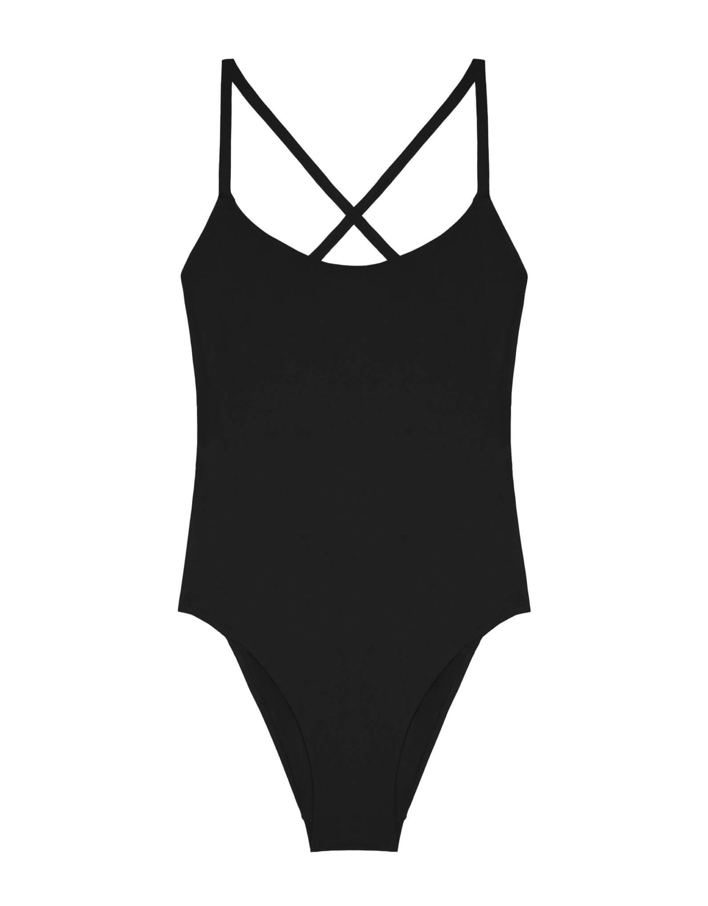 Uno in black is Lido’s classic, timeless one-piece, defined by slender straps that cross elegantly at the back. It features a softly rounded neckline that flatters both smaller and fuller busts, paired with an elegantly scooped back. Crafted in Italy from a technical, sustainable Lycra with a matte finish, the Uno is cut with refined proportions to create a mid-coverage silhouette that balances comfort and style.