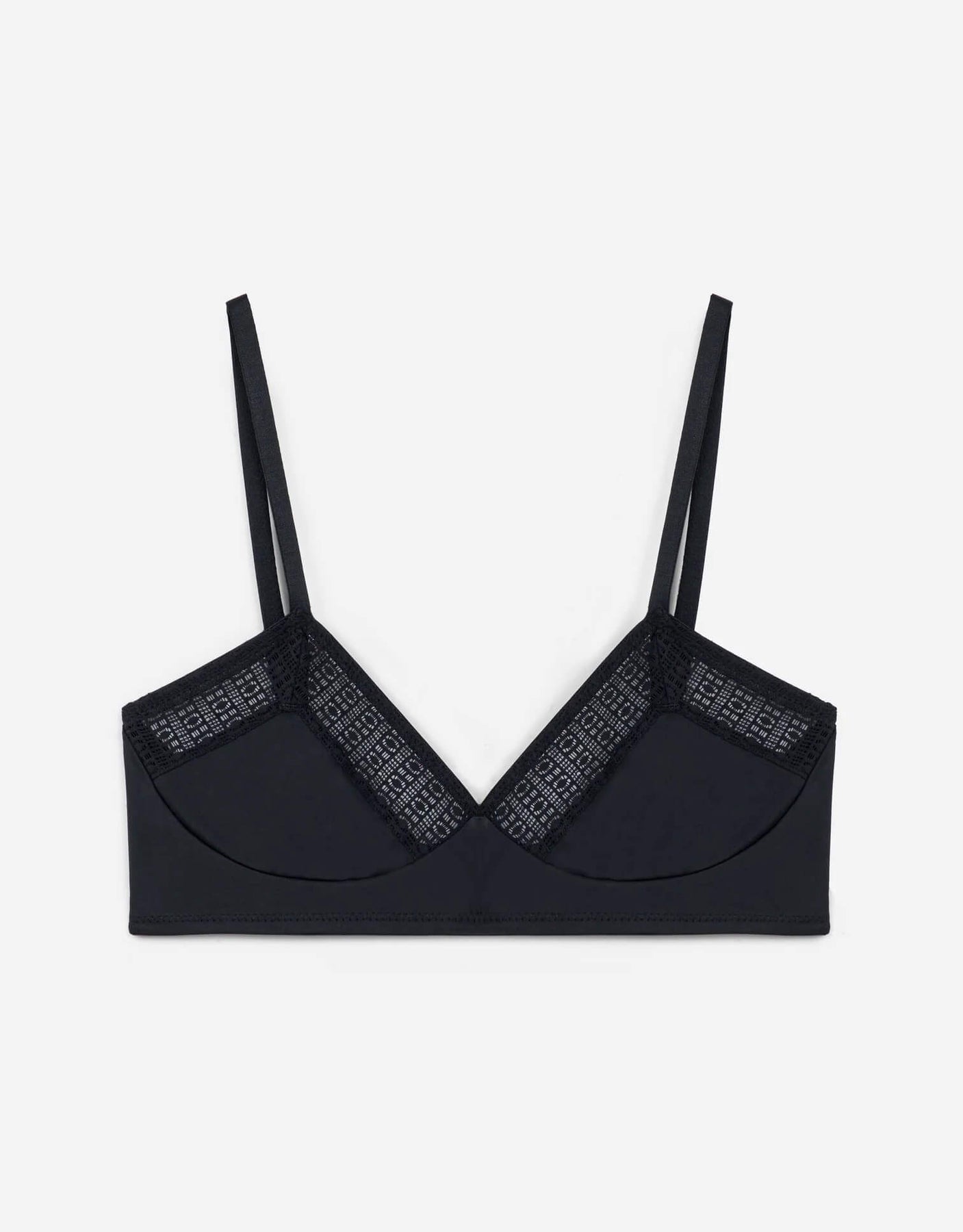 Else Matrix Soft Triangle Bra in black with sustainable lace and soft microfibre cups